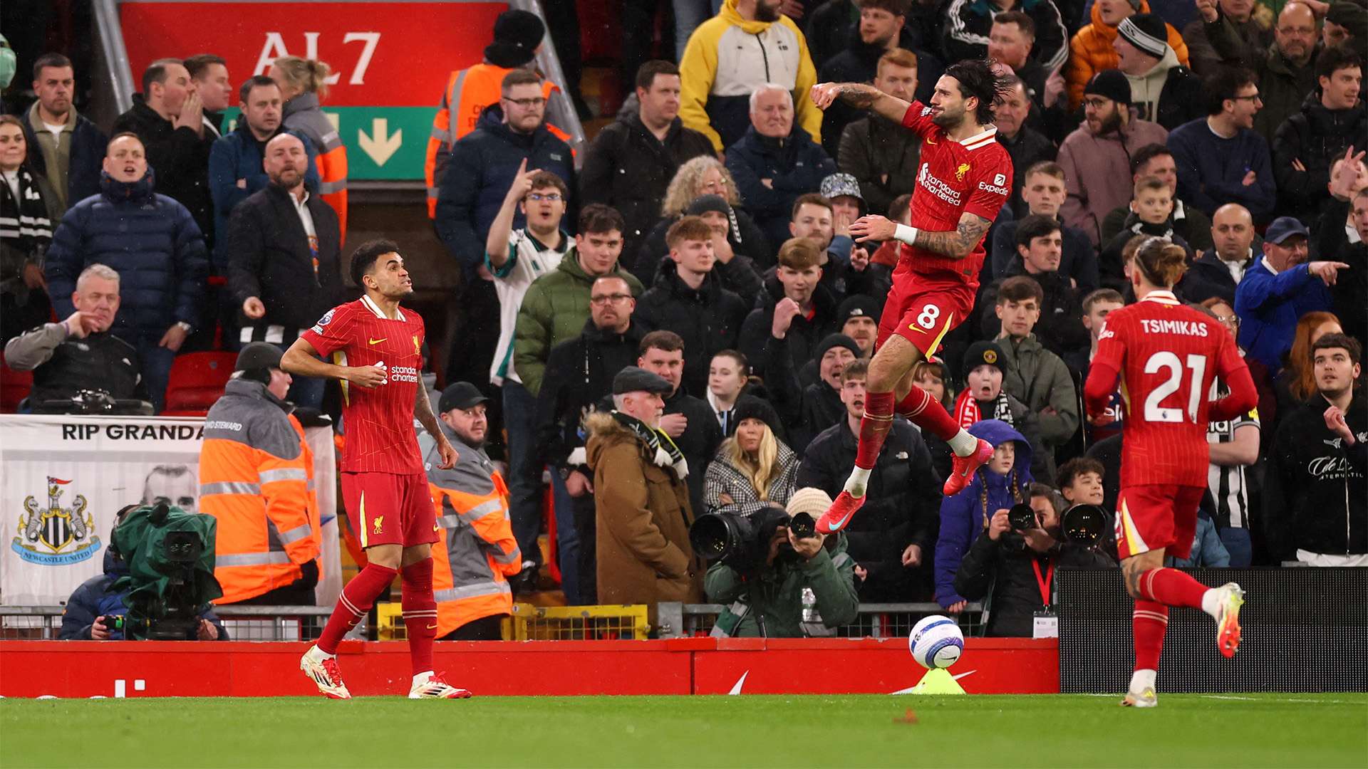 **英超联赛:迪亚斯与萨拉赫联袂建功,利物浦2-1力克狼队** 在英超赛场上,利物浦以2-1的比分逆转战胜狼队,再次展示出他们不可忽视的竞争力。**迪亚斯的劲射破门**和*萨拉赫的进球*成为这场